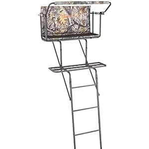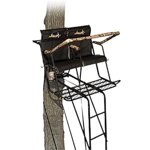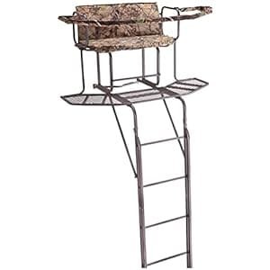 It has a capacity of up to 500 lbs. The spacious design allows you to hunt together comfortably and safely. However, it is heavy and difficult to set up alone, especially for smaller hunters. The ladder stand is also quite large, making transportation and storage challenging.