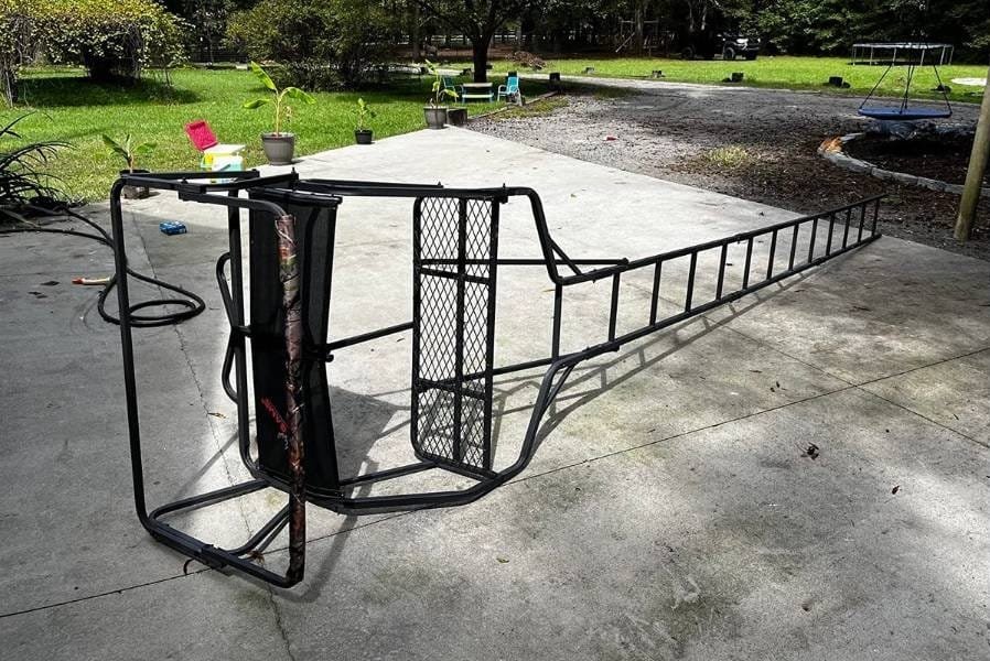 The frame is powder coated with weather defender, which protects this stand against bad weather and helps eliminate sound. It will provide a spacious and comfortable elevated platform for the long hunting season. Keep in mind, the Comrade X ladder stand can be cumbersome to transport.