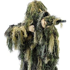| North Mountain Gear Woodland Camo Ghillie Suit | ![]() | M, L, XL, XXL | Woodland camouflage with functional features | Approximately 3 lbs | Check Price |