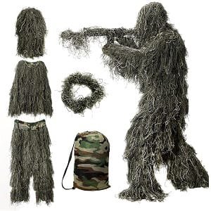 | DoCred 5 in 1 Ghillie Suit | ![]() | S, M, L, XL, XXL | 3D camouflage for effective concealment | Approximately 2.5 lbs | Check Price |
