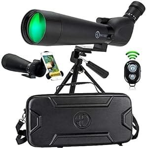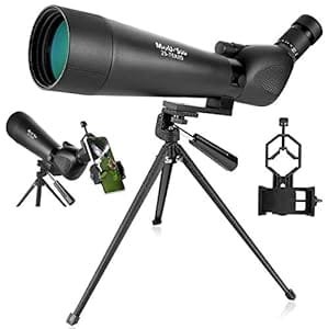 The package includes a tripod, a smartphone adapter (you can take pictures and videos thru your phone), a soft carrying bag and a protective case. Overall, you won’t find an alternative to the Gosky spotter at this price range.